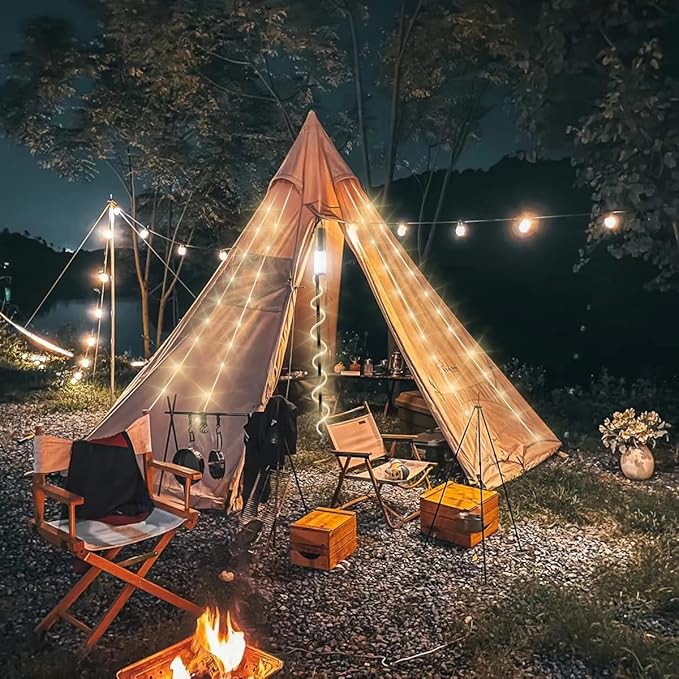 - ๐๐ฎ๐บ๐ฝ๐ถ๐ป๐ด ๐๐ถ๐ด๐ต๐๐ ๐๐ถ๐๐ต ๐ช๐ฎ๐ฟ๐บ ๐ช๐ต๐ถ๐๐ฒ ๐ฆ๐๐ฟ๐ถ๐ป๐ด ๐๐ถ๐ด๐ต๐๐: outdoor camping lights with 49.2ft length camping canopy string lights can be used around a canopy or tent, the string lights have 4 modes, which contains strong light, low light, flashing and breathing, which can create the perfect outdoor camping atmosphere according to the needs.