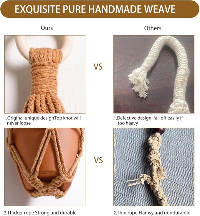 - HANDMADE WEAVING CRAFT - Hanging plant holder made from eco-friendly cotton rope and woodedl ring, It has a strong flexible woven design, sturdy and durable, enough to hold the weight of the pots, not easy to break, you can take them home for your plants with confidence
