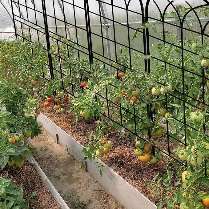 LZRS 4 Pack 71x20in Rustic Iron Arch Decoration Garden Trellis with Black Metal Coating โ Perfect for Supporting Climbing Plants Outdoor, Roses, Vines, Flowers, and Vegetables.