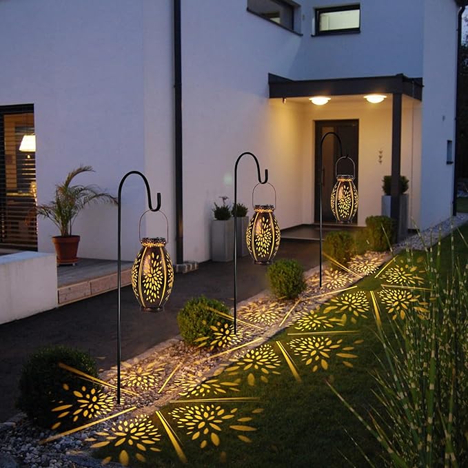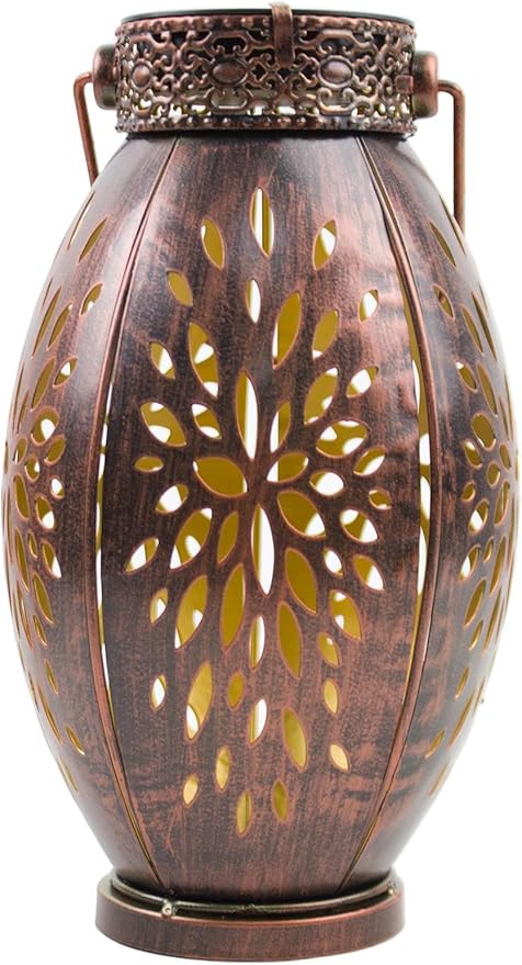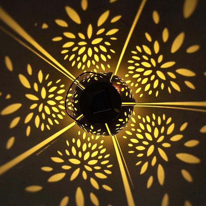 - 【Gorgeous Design/2pack Lanterns】-- Our pearlstar outdoor solar lanterns feature a vintage copper design with exquisite hollow patterns that emit a soft golden light at night, creating dynamic and beautiful patterns. They're a gorgeous and unique addition to any outdoor garden or yard.