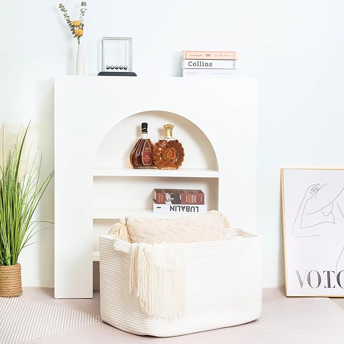 - Decorative Storage Baskets for Home Decor - A stylish, practical alternative to other boring storage solutions. Not only will our large storage baskets help you get organized, their sleek, sophisticated shape and neutral colors will complement any decor and any room: the bathroom, playroom, bedroom, living room, laundry room, mudroom, home office, entryway & more.