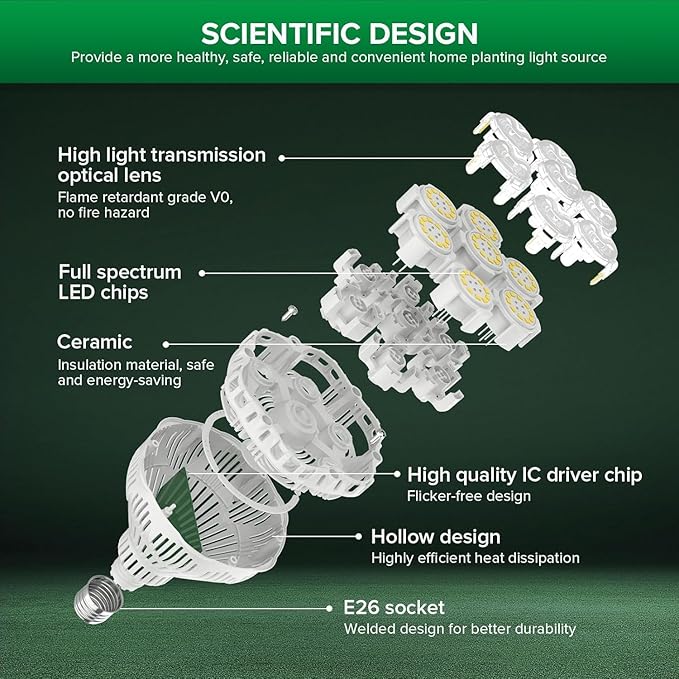 - FULL SPECTRUM & NATURAL LIGHT: Imitate the solar spectrum, customize a more ideal full life cycle full spectrum supplementary light program, covering the entire visible spectrum of 400nm-780nm; High Color rendering index, infinitely close to natural light, suitable for every cycle of indoor potted plants, such as monstera, basil, orchid, philodendron, Bawang fern, succulents, aloe vera, devil's Ivy, calibrachoa, African violet, etc