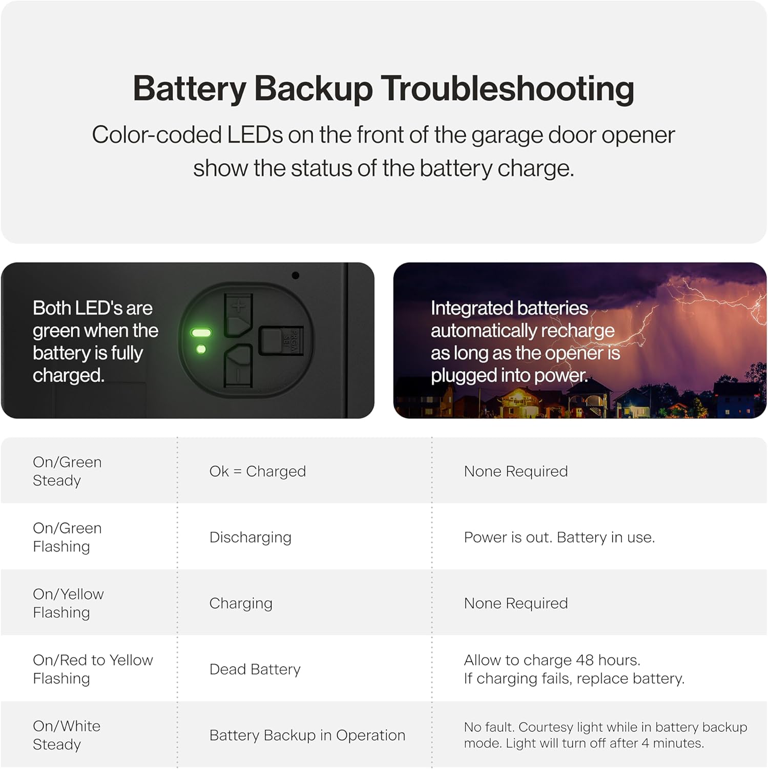 • BATTERY BACKUP INCLUDED: An integrated battery backup allows for this Genie garage door opener to be used when the primary power is out.