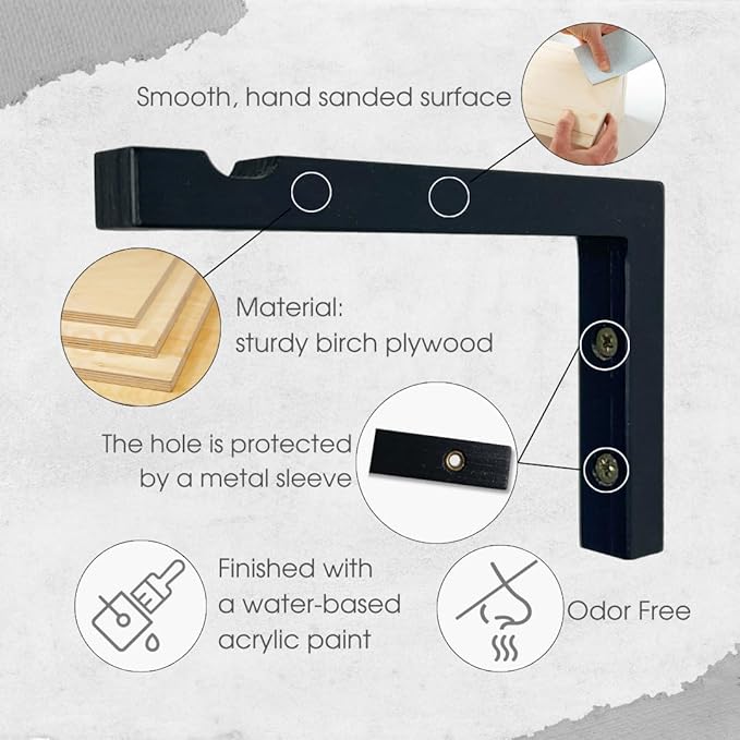 2-Piece Set of Plant Hooks for Wall 6 Inch - L-Shaped Mounted Wooden Plant Hook - Indoor and Outdoor Bracket Plant Hanger for Planters, Lanterns, Bird Feeders and Plant Basket (Black)