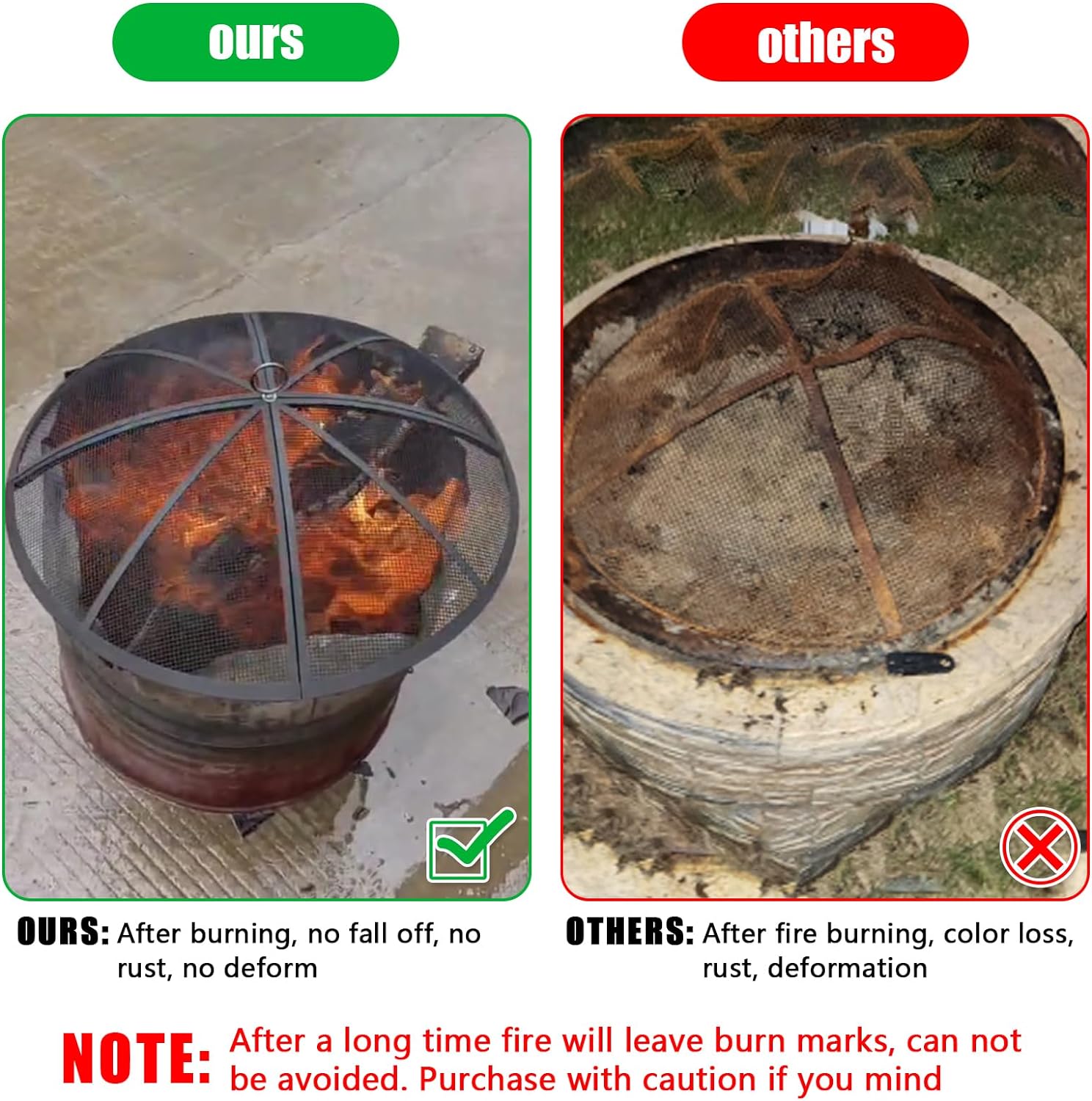 - 【Upgraded Material is More Sturdy】: The round fire pit screen cover is made of stainless steel. We reinforced it with 12 additional support bars, It has excellent heat resistance and corrosion resistance, sturdy and Long-lasting, can be used for a long time, and it is not easy to deform even if you press the surface of the grid. No surface coating will be destroyed and assembly parts will fall off because the fire has burned through