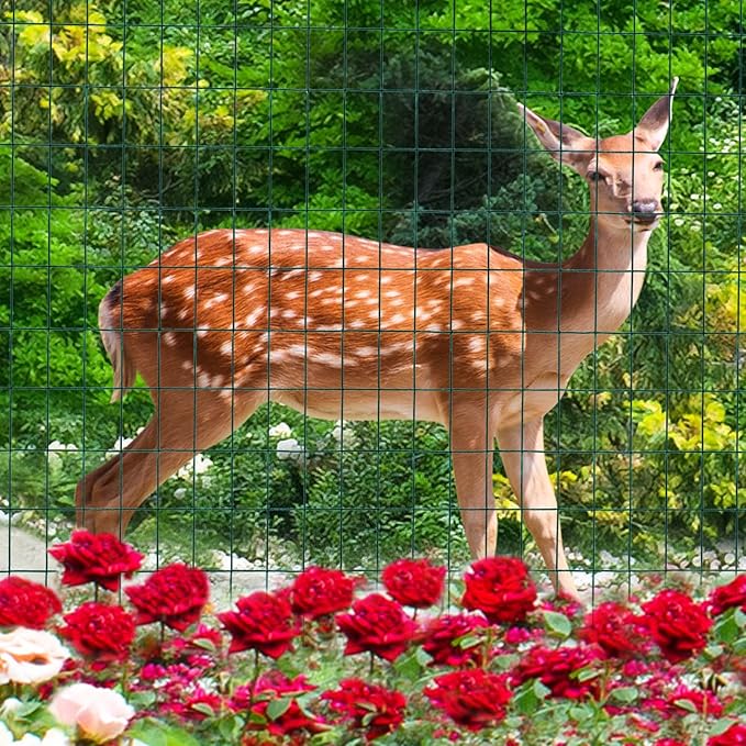 Green PVC Coated Welded Wire Fence 48 Inch x 25 Foot, 2 Inch x 3 Inch 16GA, Garden Border Fencing Roll Vinyl Coating Metal Wire Mesh for Yard Vegetable Plant Protection Poultry Netting