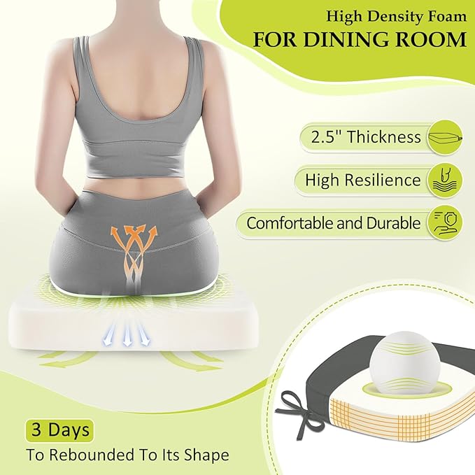 - Size Guide: These dining chair cushions measure 17" (L) x 16" (W) x 2.5" (H), designed to fit most standard dining chairs. They offer a practical solution to refresh your dining decor. Note: We recommend measuring the width and depth of your chair seat before purchasing to ensure a proper fit