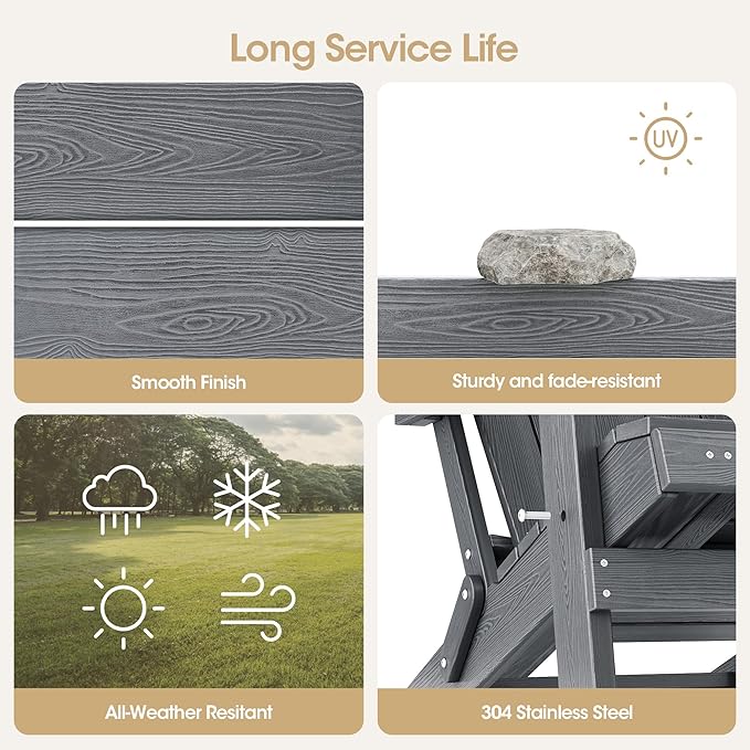 - High Quality Material: Qsun Adirondack chair is made of HIPS material and 304 stainless steel screws. HIPS material can resist moisture and corrosion. HIPS is easy to color, you can color or decorate the chair. 304 stainless steel screws are rustproof