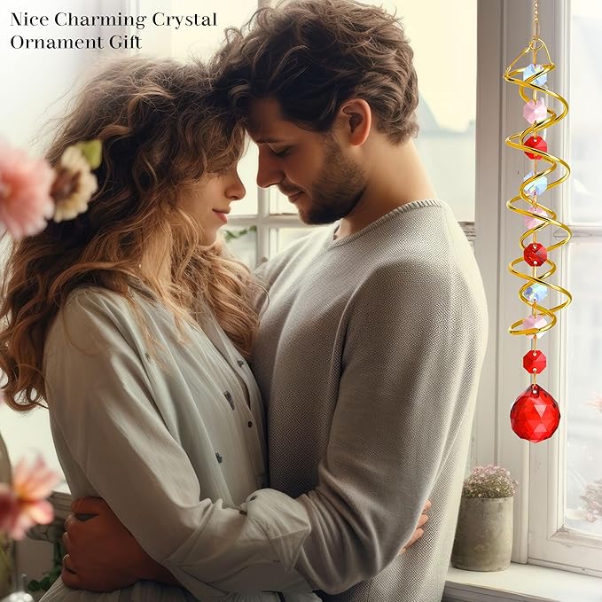 - Vibrant Red Crystal Glass Ball: Adorned with a 1.18 inch red crystal glass ball, this gazing ball spiral tail suncatcher adds a pop of enchantment to any garden or patio.You can also add a motor(not include) to let the spiral to spin ,while spiral tail rotating (it can’t spin by itself)