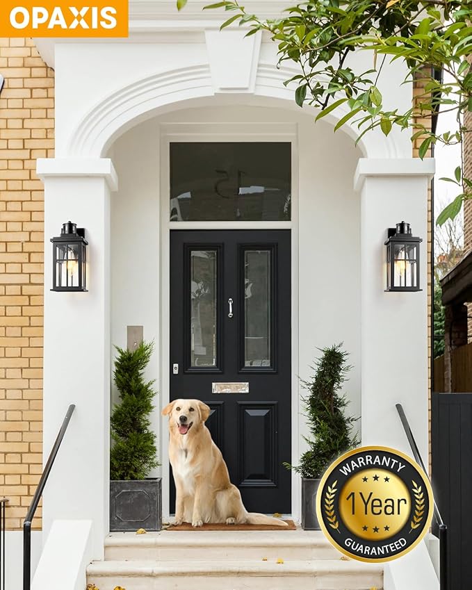 - ☀️【Durable and Stylish Design】The Matte black finish geometric frame and a sturdy tempered glass panel design allow light to pass through from all directions, creating an elegant and bright appearance at night. Designed to endure various outdoor elements, this outdoor house lights are a perfect addition to your porch, patio, garage, or terrace. Regardless of seasonal changes or inclement weather, our outside light fixtures for house provide long-lasting illumination while adding a touch of sophistication to your home.