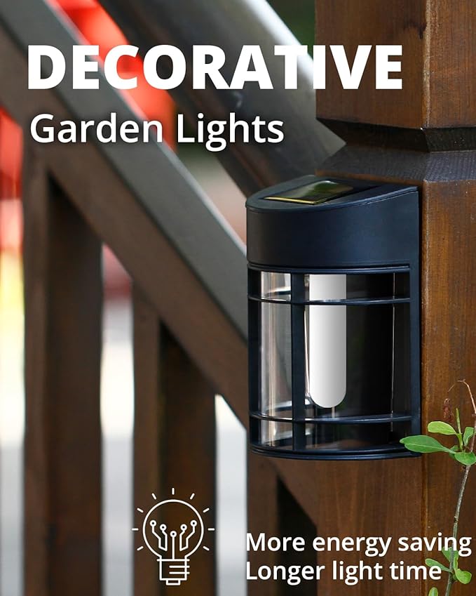 - High Efficiency Energy Saving - Thanks to advanced solar panel technology, Fence lights solar powered convert sunlight into energy that is stored in batteries. Our solar lights provide an eco-friendly solution to your night-time lighting needs and can be used without any running cost for years.