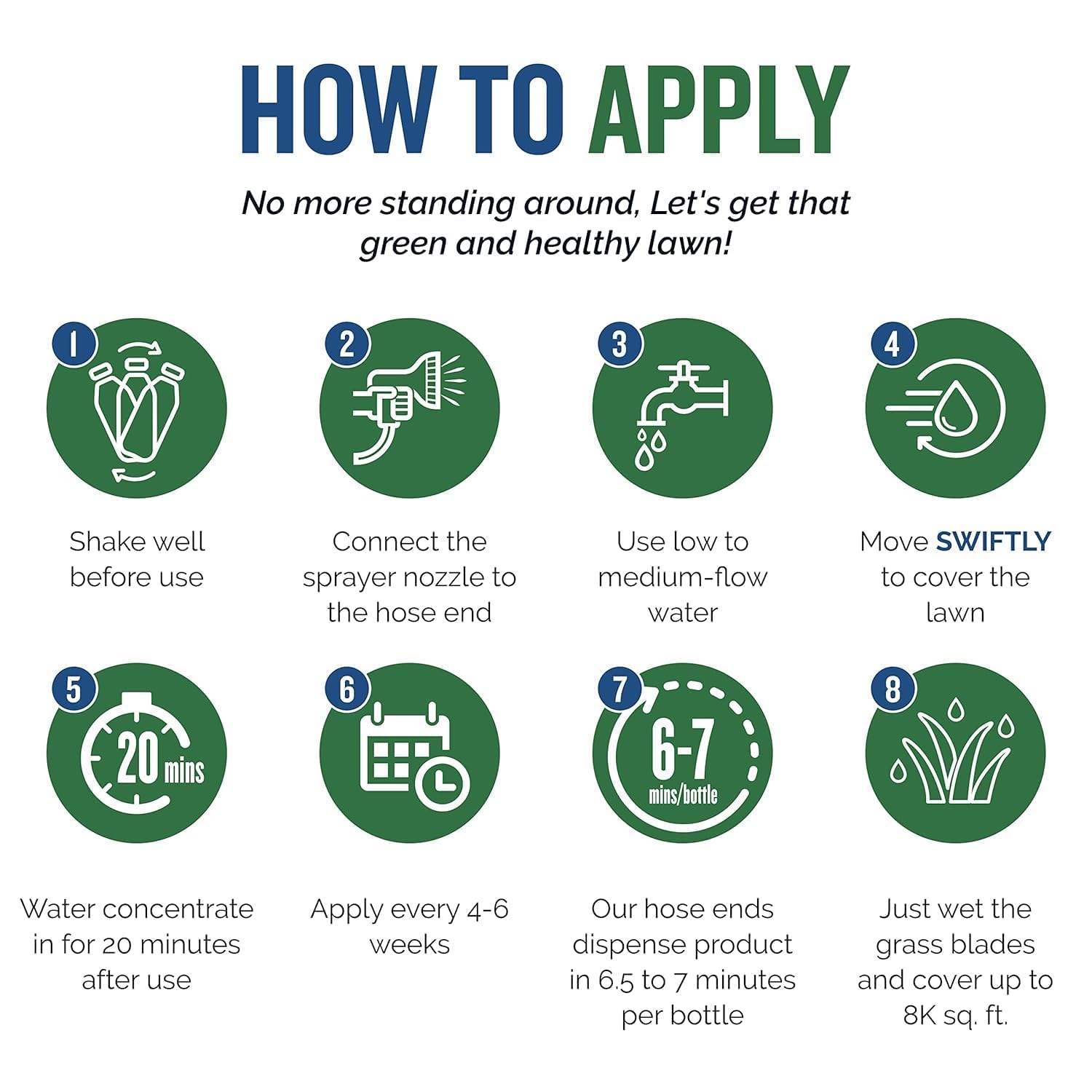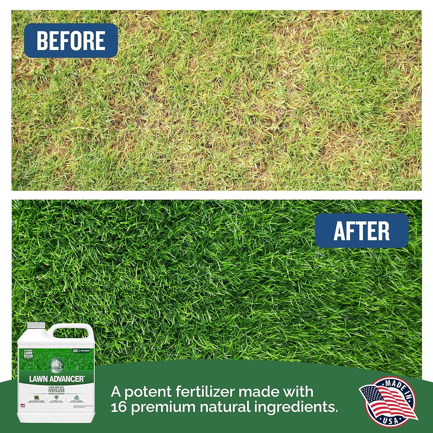 - Effortless Application: Our grass fertilizer for lawn simplifies lawn care routine with its user-friendly design and liquid formula. Mix 4 oz. of the Lawn Advancer per gallon of water, shake, apply, and witness the transformation of the grass. Apply every 4-6 weeks to provide energy, nutrients and stress relief to your lawn and soil