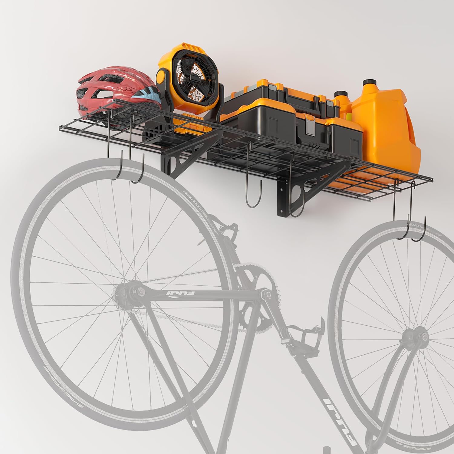 - Multi-functional Garage Wall Shelving: Made of durable, heavy-duty cold-rolled steel, this 1x4 ft garage shelf features 6 hooks, offering plenty of storage space for your garage, small pantry, or kitchen.