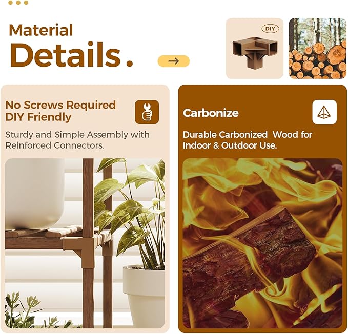 - Durable and Sturdy:This plant stand requires no screws, making it perfect for DIY enthusiasts. Utilizing the clever application of the triangular stability principle, it enhances stability. Additionally, plastic joints reinforce the structure of the plant stand, ensuring its durability.