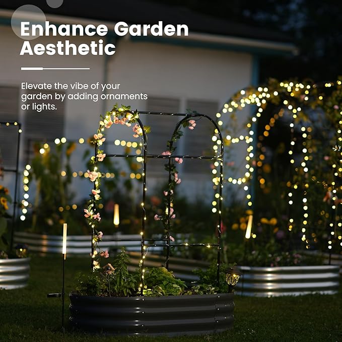 - 【Multifunctional Trellis】More than just a simple raised planter box, the trellis adds a realm of possibilities to your garden. You can hang small flower pots, decorations, and ambient lights on the trellis, or drape it with mesh or covers. As lush plants climb over the trellis, they also provide refreshing shade for your garden.