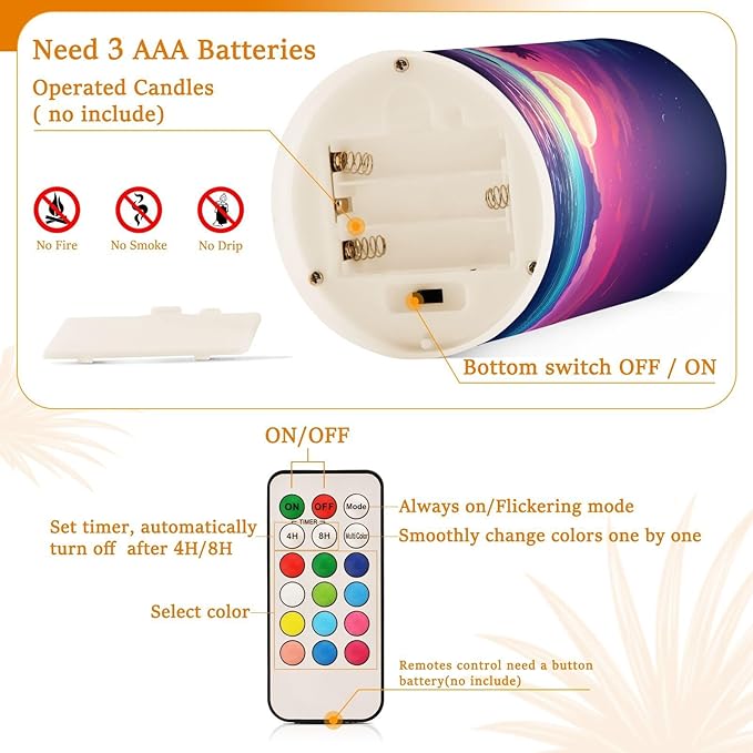 - Convenient Remote Functions: Includes an 18-key remote controller with a timer. You can control these candles remotely when they are placed somewhere difficult to touch. Set 4H/8H timers will save you trouble turning them on/off, they will come back on automatically at the same time every day. Also, you can adjust the light color as you want