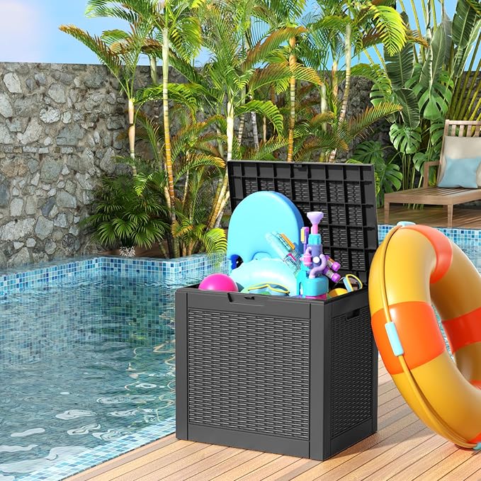 30 Gallon Resin Deck Box, Lockable Patio Outdoor Storage Box for Furniture, Garden Tools and Tools Storage, Waterproof Outside Storage Boxes - Black