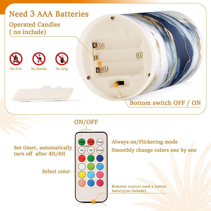 - Convenient Remote Functions: Includes an 18-key remote controller with a timer. You can control these candles remotely when they are placed somewhere difficult to touch. Set 4H/8H timers will save you trouble turning them on/off, they will come back on automatically at the same time every day. Also, you can adjust the light color as you want