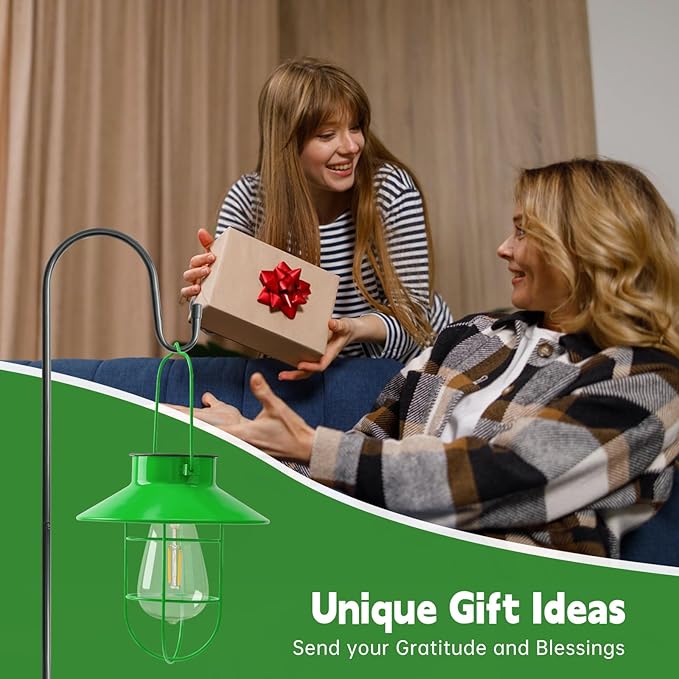 Solar Lights Lantern Lamp with Shepherd Hook, Solar Metal Lanterns, Outdoor Lights Decor,Edison Bulb Lights for Garden ,Outside Decor for Pathways,Patio, Lawn, or Landscaping(Green)
