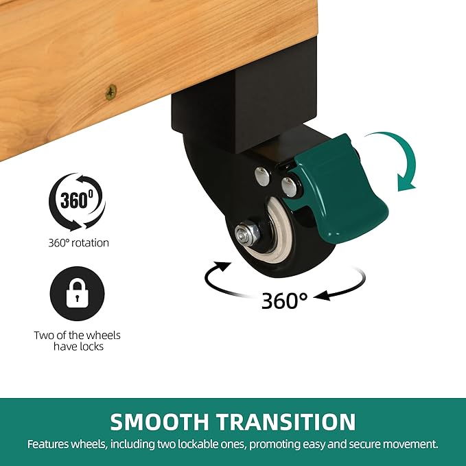 - Movable and Lockable: Say goodbye to stationary garden beds. With wheels on two sides, including two lockable ones, this raised garden bed with trellis is as mobile as a fairy tale carriage. Move it around effortlessly to chase the sun or rearrange your garden wonderland.