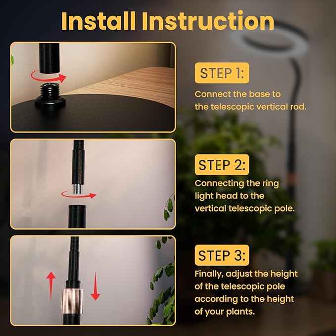 • This plant grow light is equipped with a metal base to ensure stable standing. The sponge pad at the bottom can prevent the desk lamp from tipping over and scratching the table. Easy to install, practical in design, it is the perfect solution for indoor desktop plants.