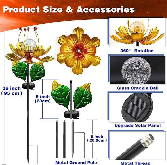 - 【 Easy to Install 】Wind Spinner Outdoor Metal is very easy to install, just twist all the accessories to install. The metal pole, the angle of the petals can be adjusted, you can also adjust the length of the pole and the degree of bloom of the flowers.
