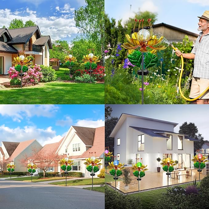 - 【 Solar Wind Spinners Outdoor 】Purple lotus flower lights wind spinner using waterproof LED burst spherical glass flower lights.It is beautiful and cute, it can decorate any place in the garden, it is beautiful during the day and at night, you can easily place and move it to any place you like!