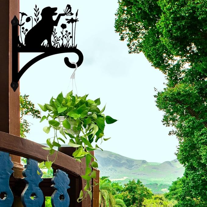 Peacoblue Iron Plant Hangers Holder for Outdoor Indoor Hanging Plants Fern Pots, Lantern, Bird Feeder, Wind Chimes, 12”x14” Dog Weather Resistant Metal Wall Brackets Hooks for Porch, Garden, Home(Dog)