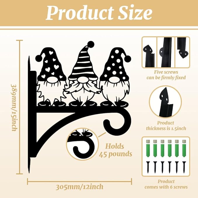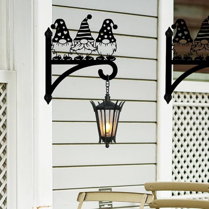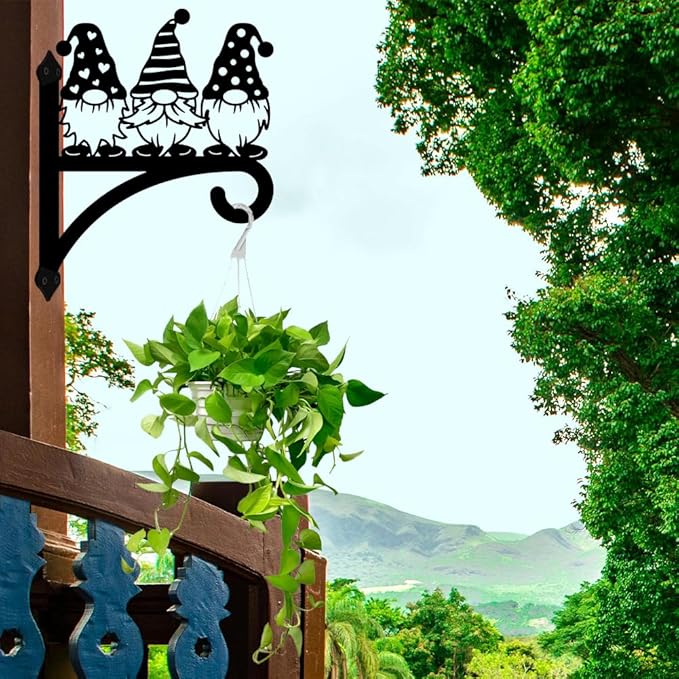 peacoblue Iron Plant Hangers Hooks for Outdoor Indoor Hanging Plants Flower Fern Pots, Lantern, Bird Feeder, 12”x14”Gnome Weather Resistant Metal Wall Brackets Holder for Porch, Garden, House(Gnome)