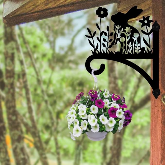 Peacoblue Iron Plant Hangers Hooks for Outdoor Indoor Hanging Plants Flower Fern Pots, Lantern, Bird Feeder, Wind Chimes, 12”x14” Weather Resistant Metal Wall Holder for Porch Garden Farmhouse(Rabbit)