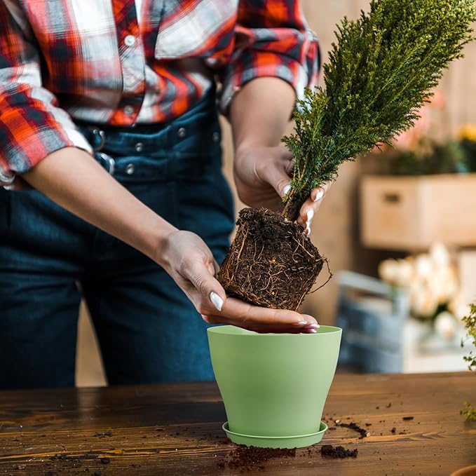 - 【Drainage Holes and Trays】Each plant pot features well-designed drainage holes at the bottom to ensure proper water flow. Additionally, saucers catch excess water, keeping your growing area clean and tidy while also ensuring that your plants remain hydrated without becoming waterlogged.