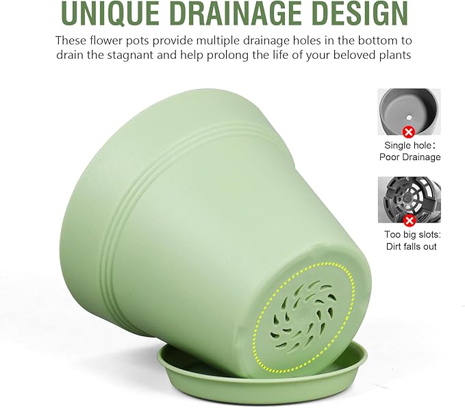 - 【Drainage Holes and Trays】Each plant pot features well-designed drainage holes at the bottom to ensure proper water flow. Additionally, saucers catch excess water, keeping your growing area clean and tidy while also ensuring that your plants remain hydrated without becoming waterlogged.