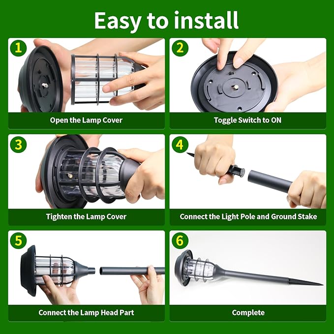 - LONG-LASTING LIGHTING: Turn on the ON switch and let the panel shine for more than 6 hours in a sunny, unobstructed place. After fully charged, the garden solar light will maintain long-lasting lighting and flashing at night
