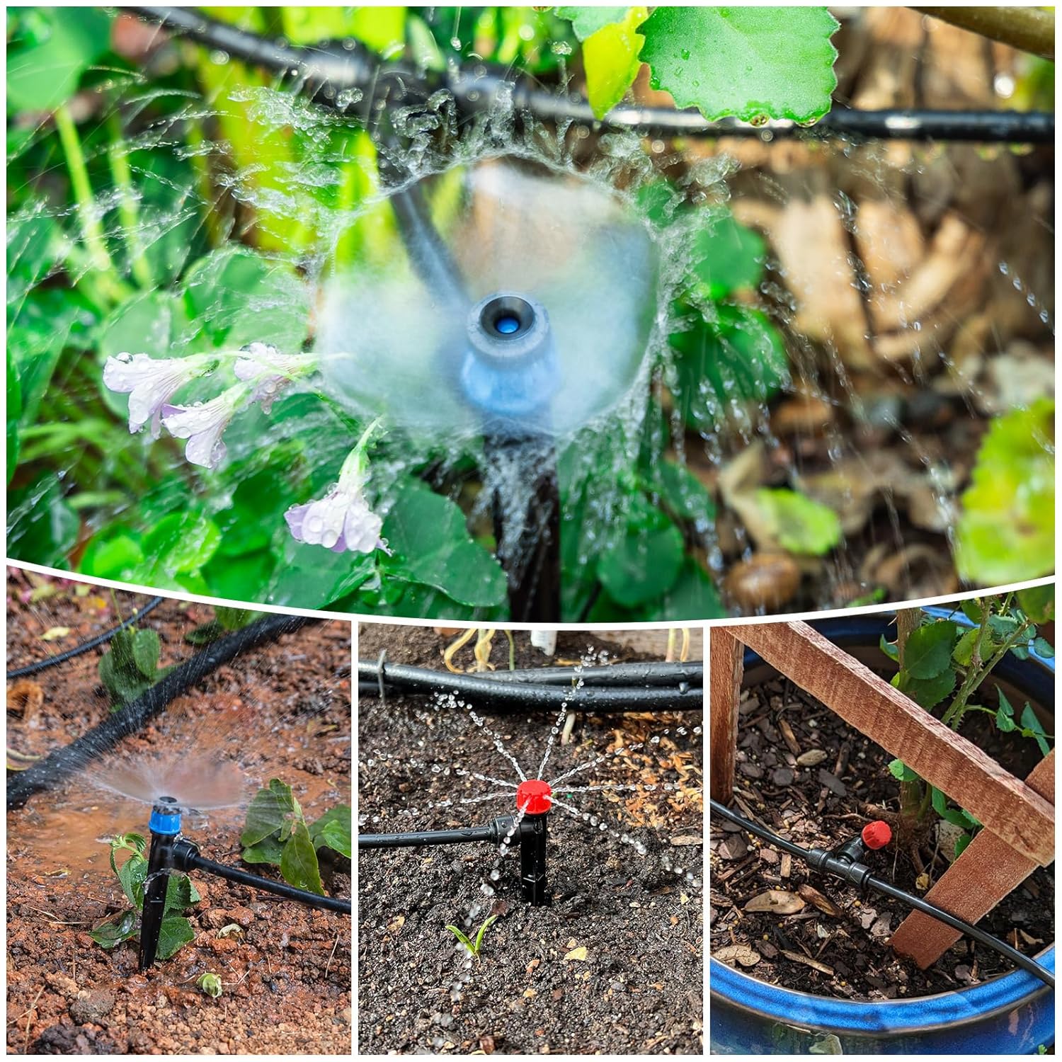 - Customizable Water Flow: Tailor your watering experience with ease. From a delicate mist to a generous 10-foot spray diameter, adjust the water flow to suit your needs. Whether you crave larger coverage, smaller streams, or a complete shutdown, our drip irrigation spray emitters deliver flexibility on demand.