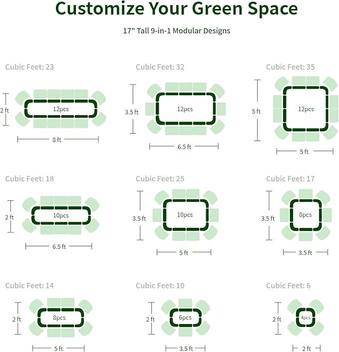 - 【Customize Your Space】This 8x2x1.5ft raised garden bed has everything you need for your garden. Our garden bed has 9 configurations to choose from and can be customized according to your space.