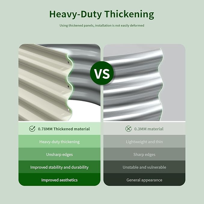 - 【High Quality Materials】This garden bed is made of colored coated steel, and the paint is not easy to peel off. We also use thicker metal plates, which will better protect the soil and vegetables and prevent product deformation and damage, making it reusable for many years.