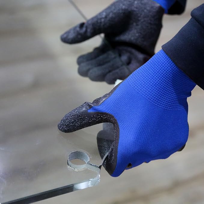 Evridwear Crinkle Latex Rubber Hand Coated Safety Work Gloves for Men Women General Multi Use Construction Warehouse Gardening Assembly Landscaping (L-Size) Blue 120 Pairs Pack