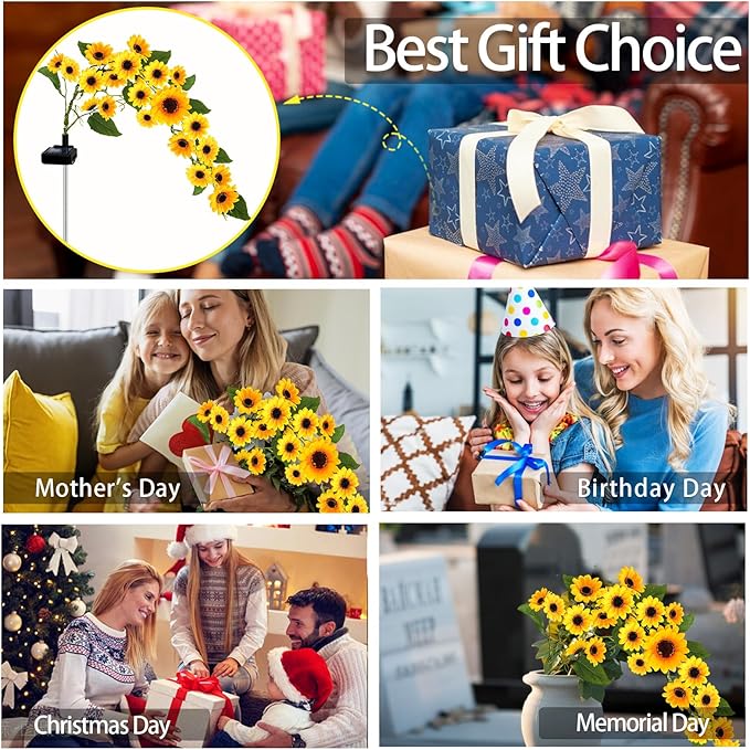 - Garden Decorations ๏ผ Unique Gift: Solar sunflower lights can enhance the beauty of your garden, lawn or patio. Their unique design and warm glow create a charming atmosphere, ideal for outdoor decorations and evening Fall decor. In addition, they are a unique garden gift, perfect for women who love gardening