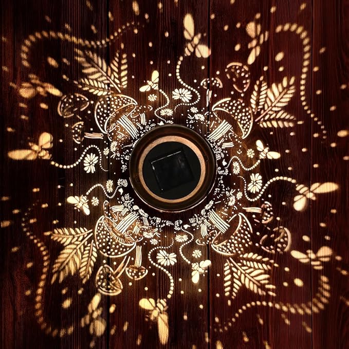 - Perfect Garden Decorations- Fairy solar lantern can project unique and beautiful patterns in a dim environment, creating a gorgeous and warm atmosphere to bring life and fun to your garden and attract your family or friends. The unique hollow out design and beautiful antique bronze color give it an artistic touch, perfect for decorating gardens, backyards, corners, Outside, sidewalks and many other scenes.
