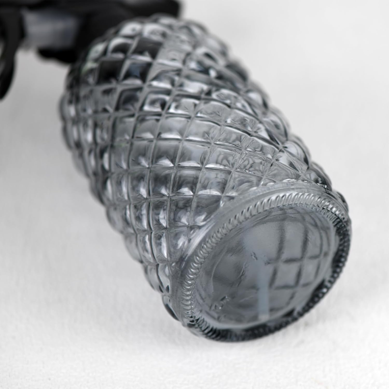 12Oz Glass Plant Spray Bottle, Gem Pattern Glass Sprayer, Watering Can with Black Plastic Top Pump, Handheld Watering Can for Indoor Outdoor Potted Plants and Greenery (Grey)