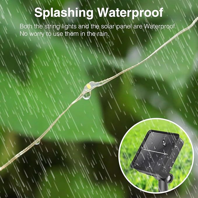 • Waterproof: Solar fairy lights can withstand all kinds of weather and are not afraid of rain, snow, suitable for outdoor use. Decorate the garden, yard to welcome every happy moment