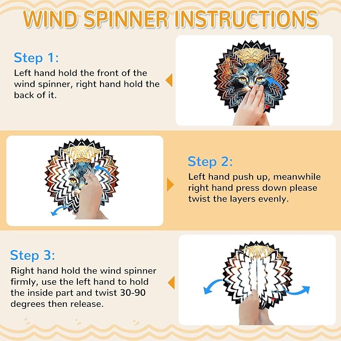 - WIDE APPLICATION — The spiral wind spinners for outside is suitable for gardens, windows, porches, front doors, backyard, trees, walls, patios, lawn and other indoor or outdoor spaces you prefer. It rotates in the wind, creating a magical 3D visual effect. This versatility makes it an ideal gift choice for weddings, Father's Day, Mother's Day, Valentine's Day, Christmas,Holiday, Halloween, Thanksgiving, anniversaries, and housewarming. A ncie DIY gift for our family, friend, mother, father.