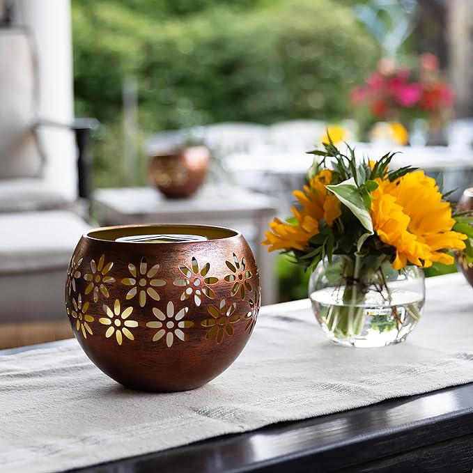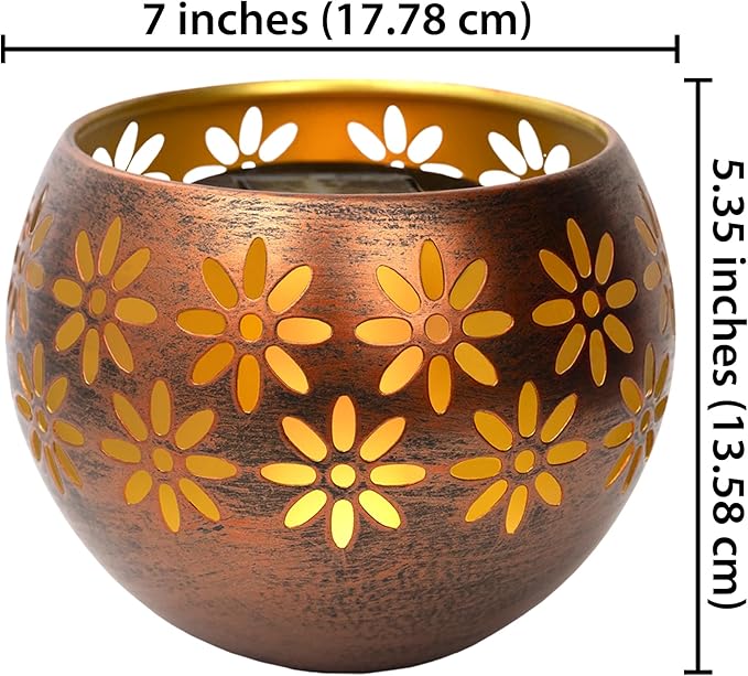 - 5.4” Metal Decorative Bowl - The Solar Fire Bowl features a stylish metal design, adding a touch of sophistication to your outdoor garden decor while serving as a functional solar table lamp, lantern and garden decor.