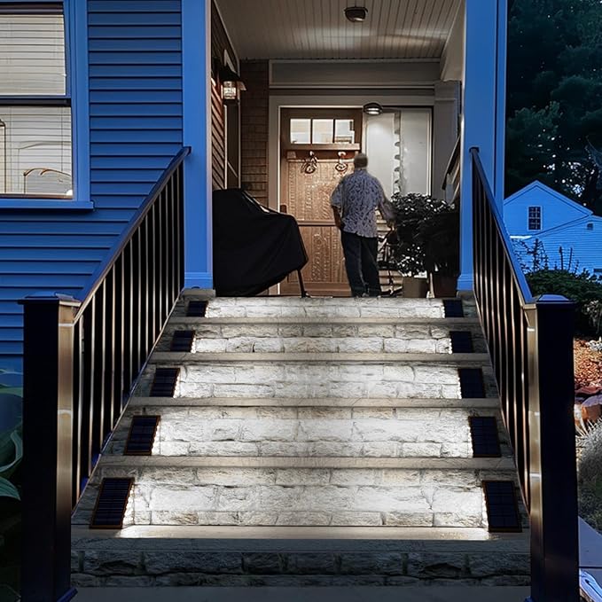 - Function and Pacticality:JOFIOS solar step lights Illuminate your every step, providing visibility to every inch of your staircase, allowing you to see clearly at night and navigate safely. Our step lights enhance the overall aesthetics of your steps and yard. Compared to regular outdoor step lights, upgrading to our premium solar-powered stair lights combines both appearance and functionality,Adding light to the night.