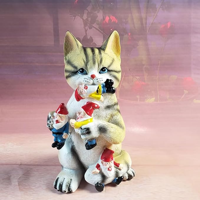 • Perfect Size: - This backyard cat gnome statue for gardens at 9*5 inch makes an impression wherever you put him - Perfect as garden decor, suitable for the garden, trees, flowers, flowerbed, fence, walkway. Add fun to your patio, garden, or backyard.