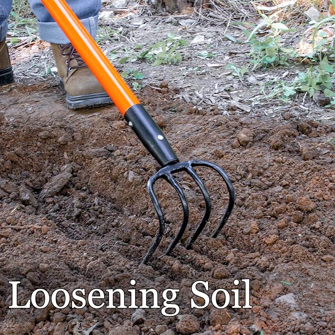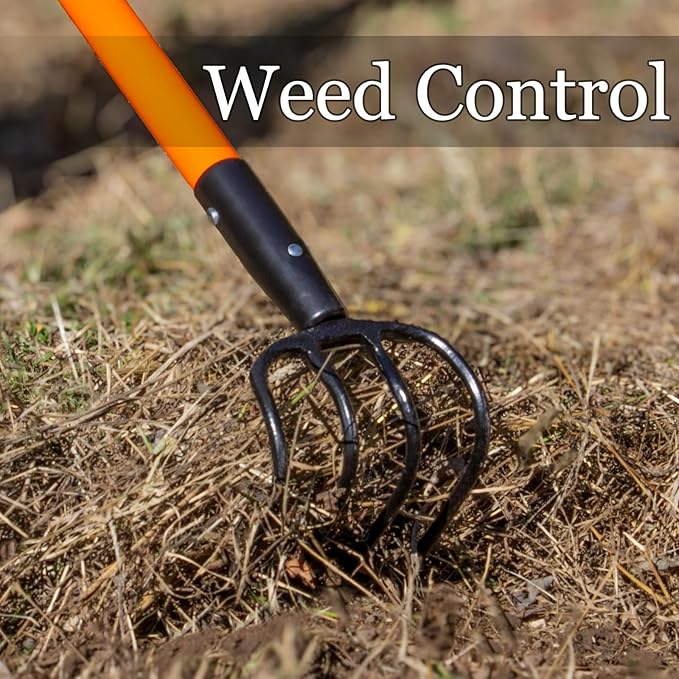 • Special Handle: The garden cultivator comes with a thickened fiberglass handle that ensures stability during high loads and reduces the risk of handle breakage. the cultivator handle comes with 2 non-slip grips that are comfortable to hold and become sticky when wet, providing a firm grip.