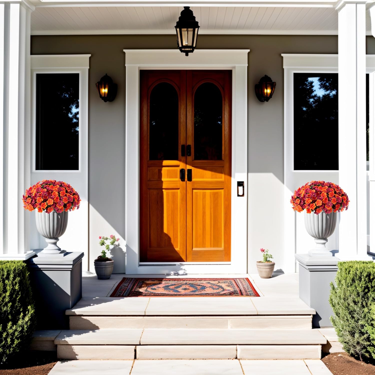 - Elegant and Weather-resistant: Adorned with a graceful array of blossoms and lush green leaves, each hydrangea branch of these arrangements effortlessly endures diverse weather conditions while retaining their stunning beauty. Resistant to UV rays and fading, they remain vibrant and captivating throughout the entire autumn, without the need for watering
