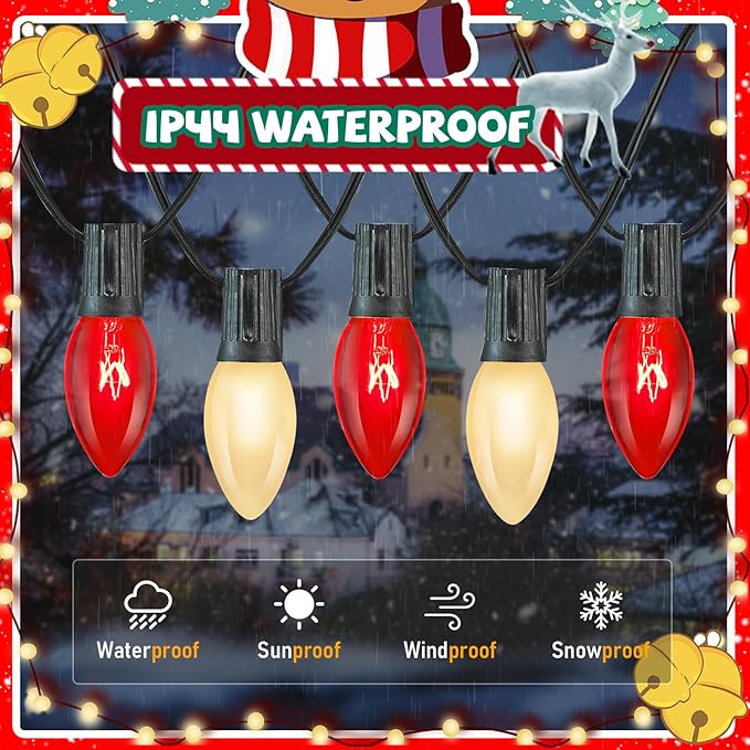 - Nostalgic Holiday Atmosphere:Capture the essence of a classic Christmas with our vintage-inspired c9 red and white christmas lights. The warm 2700K glow and vibrant colors create a magical atmosphere, making your home the heart of holiday cheer. Perfect for those who love a touch of nostalgia in their holiday decor.