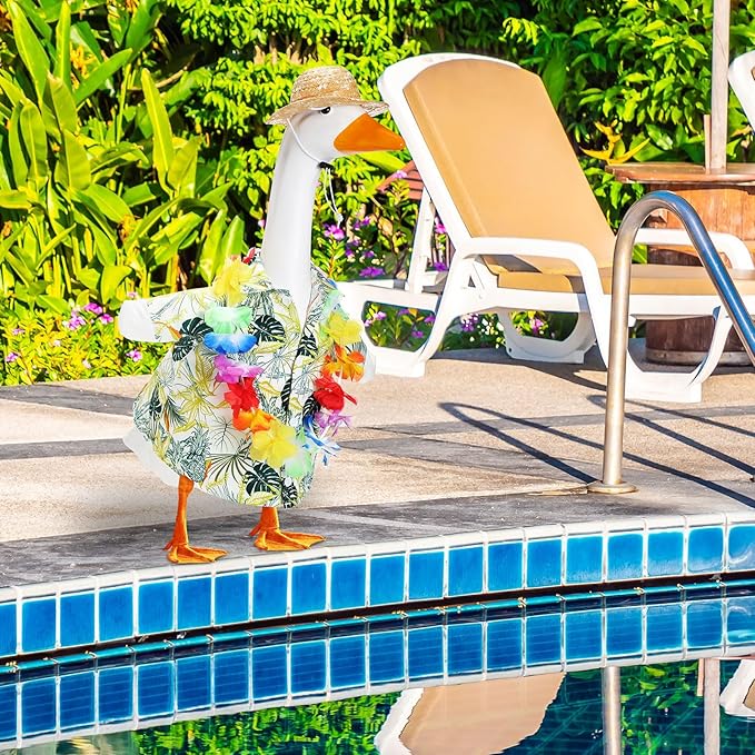 Goose Outfit Lawn Goose Porch Clothing Outfits for Yard Summer Luau 23'' Lawn Outdoor Decoration(Fresh Style)