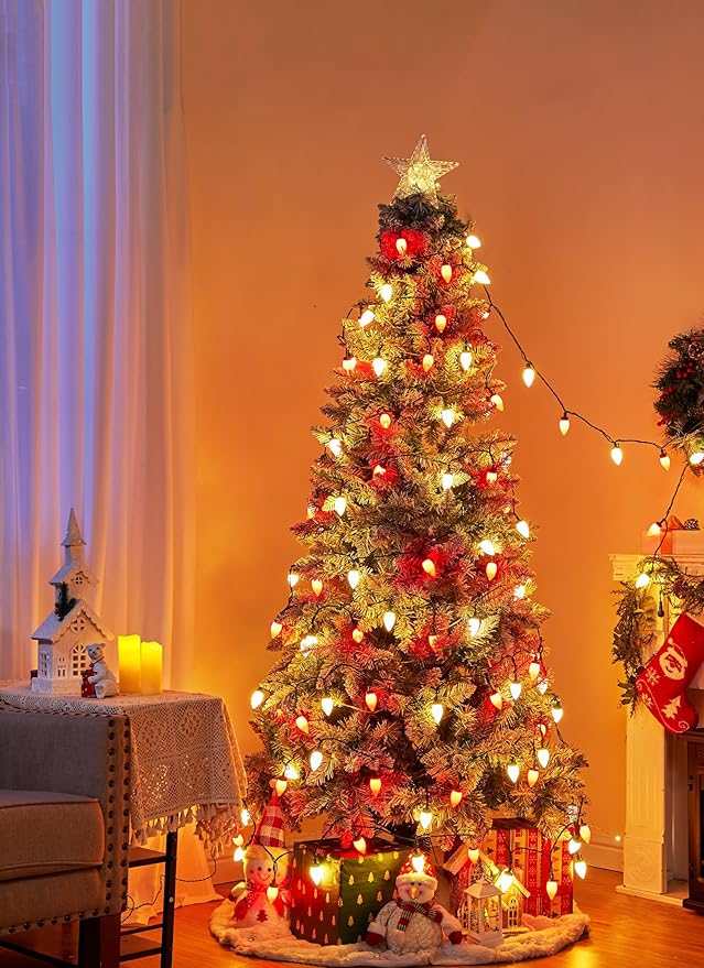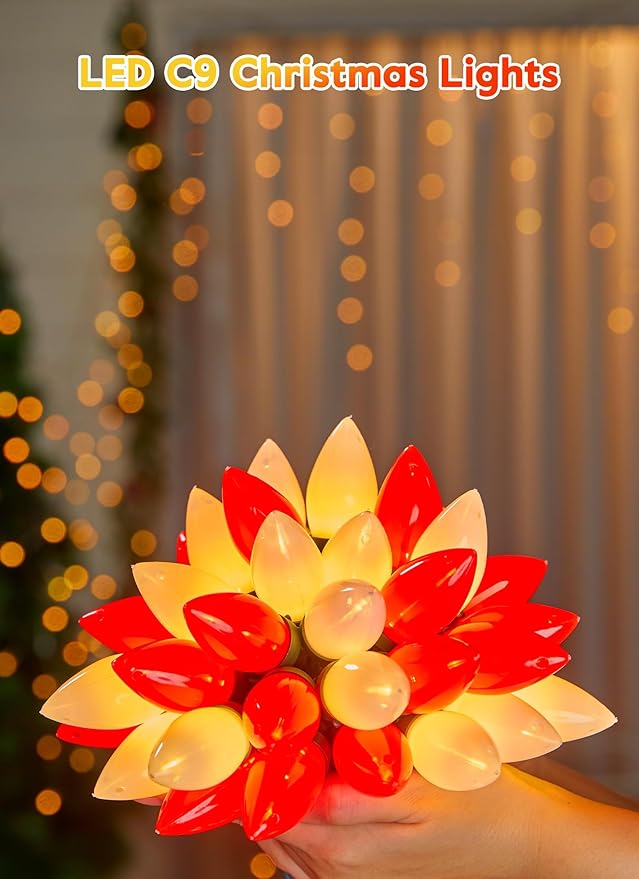 - 【 Connectable Up to 33 Sets 】- You can connect up to 33 sets of these C9 LED Christmas string lights end to end, providing convenience for decorating large areas or substantial outdoor objects such as rooflines or oversized trees